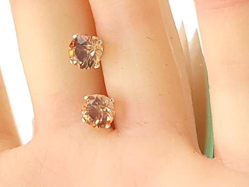 The gems are 1.2 ct. each and are 6.5 mm. They are set on .925 sterling silver studs. The gemstones are from the Double Eagle #16 mine near Plush, Oregon.